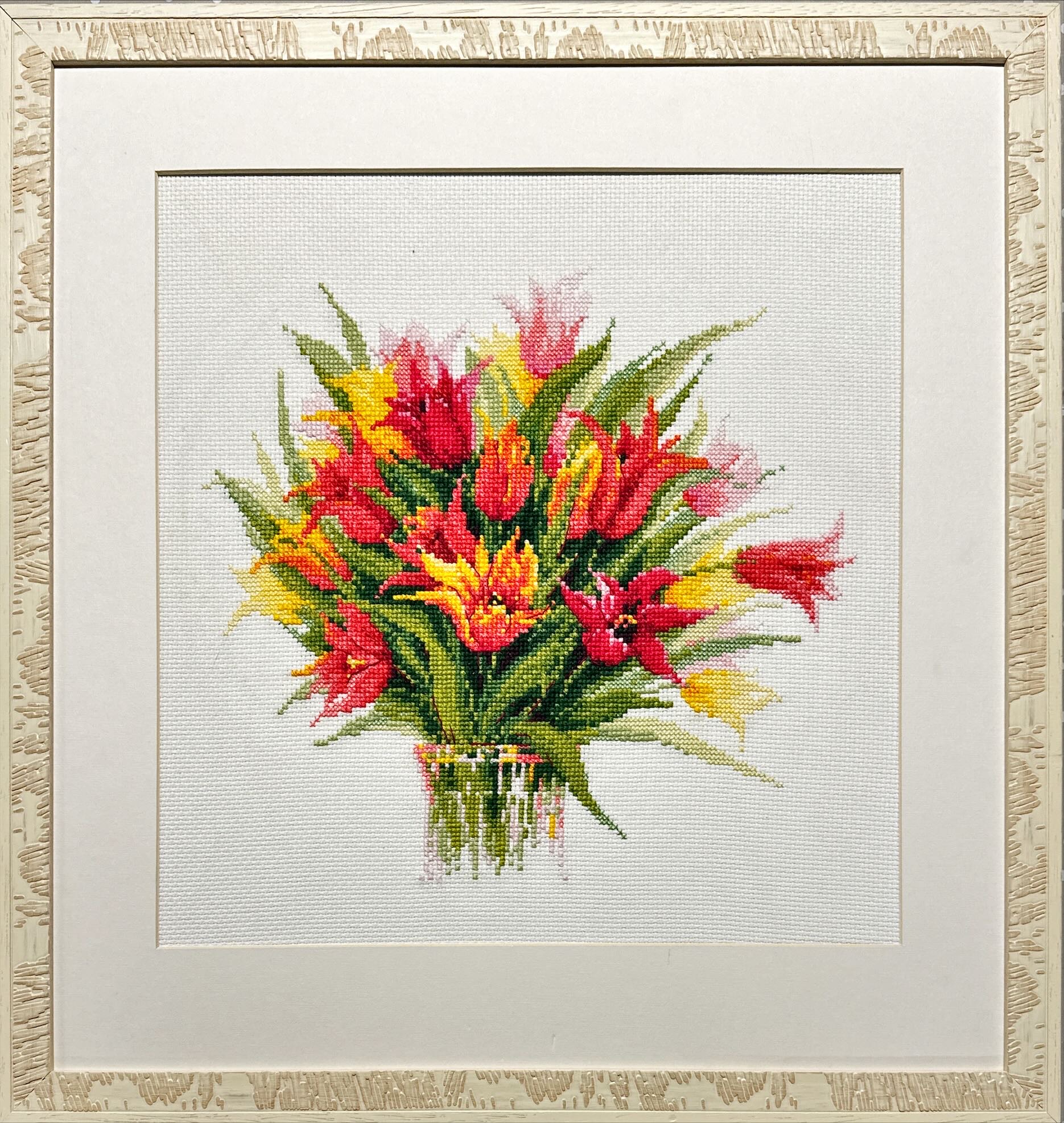 1293 Stitched and Framed Model Bouquet of Tulips