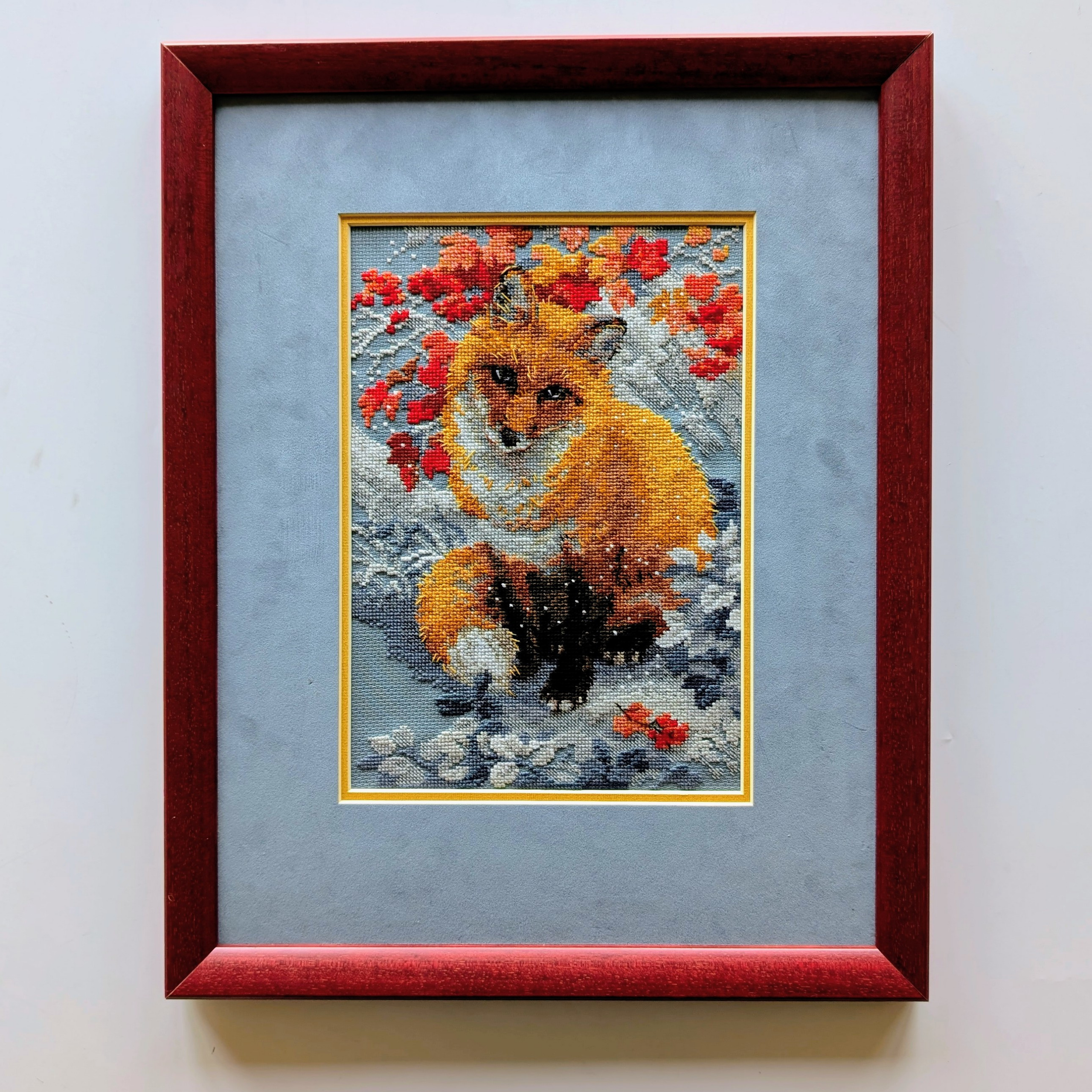 This RIOLIS cross stitch artwork 1510 showcases a charming fox resting among vibrant red and orange autumn leaves. The design captures the fox’s soft fur, gentle expression, and the cozy warmth of a crisp fall day. Cool gray stones contrast with the bright foliage, creating a balanced, atmospheric composition. Perfect for nature lovers and fans of woodland art, this piece brings a touch of autumn magic and wildlife beauty into your home, making it a standout addition to any collection.