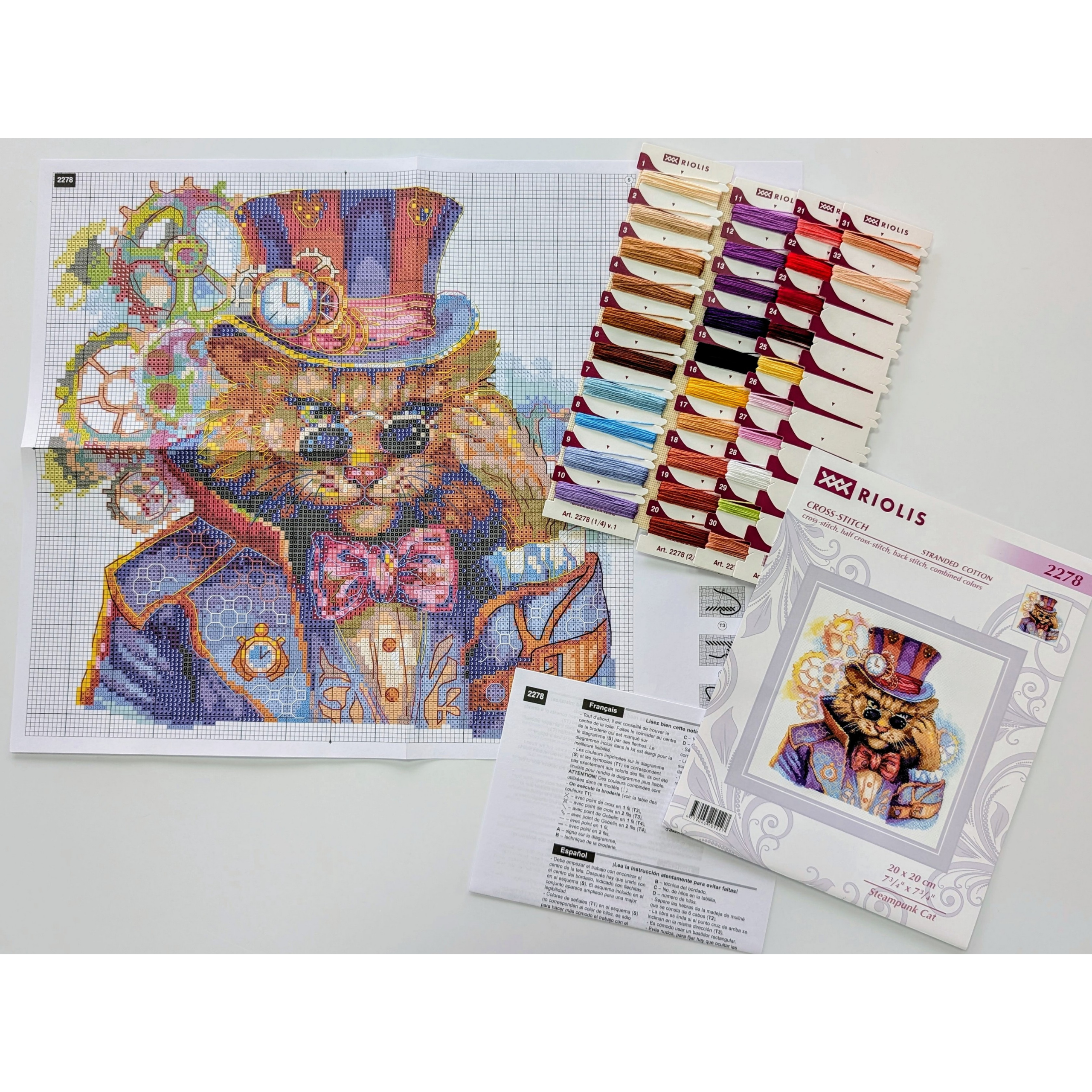 2278 Steampunk Cat Cross Stitch Kit with Aida