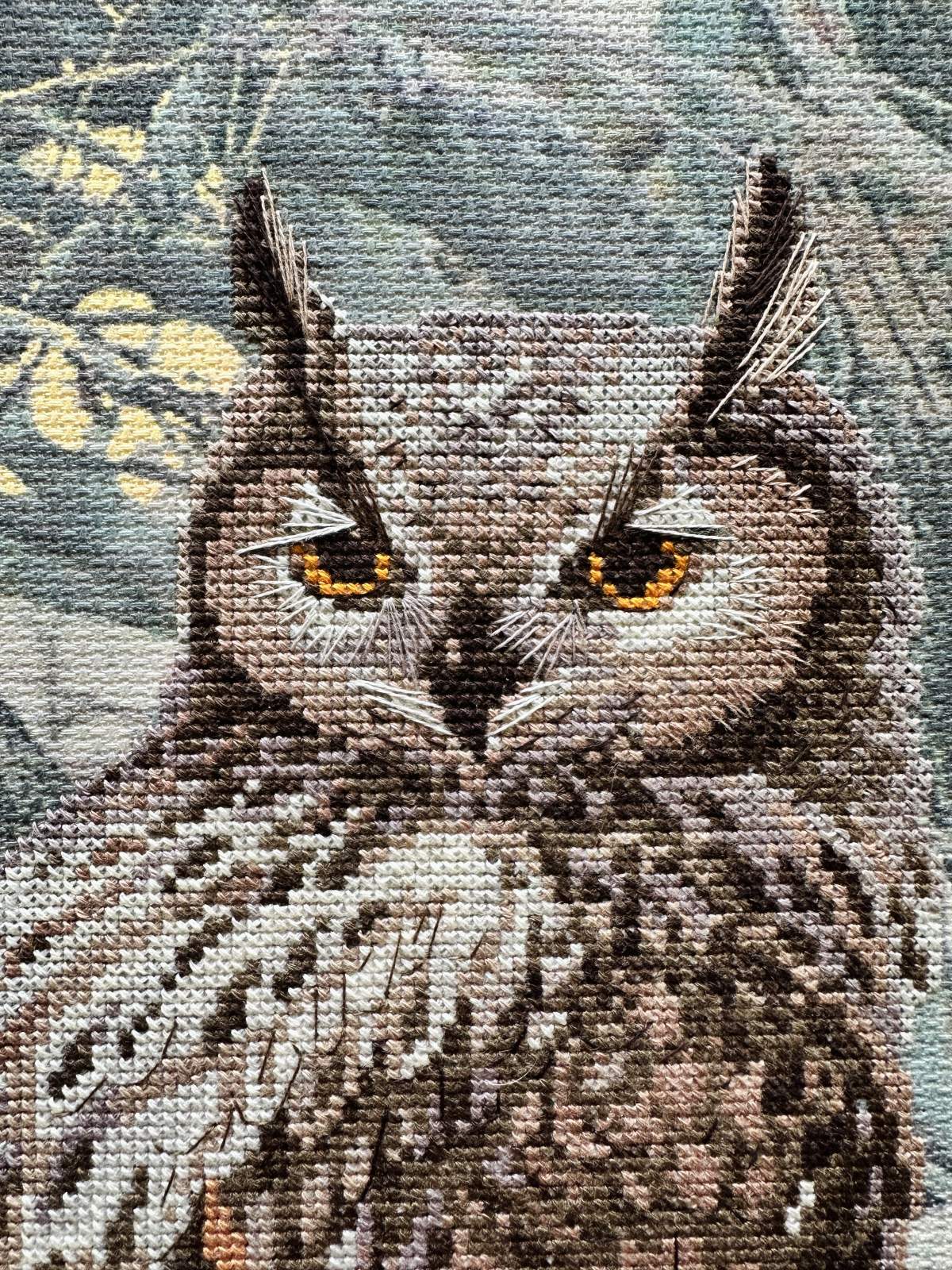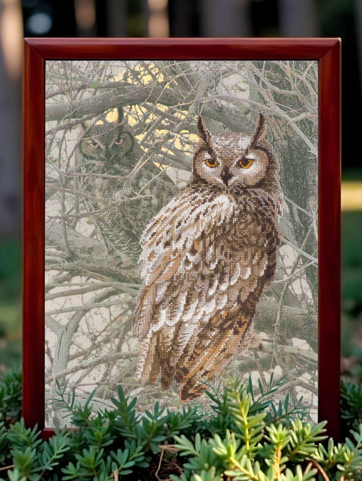 This kit is a wonderful choice for both beginners and experienced stitchers. The project is relaxing and engaging. As you stitch, you’ll see the eagle owl’s striking feathers, piercing eyes, and noble stance take shape. The second owl adds depth and mystery to the forest setting.