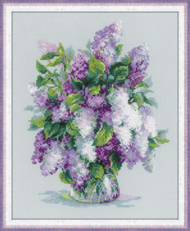 Create a graceful bouquet of lilacs with the 1447 Gentle Lilac Cross-Stitch Kit from RIOLIS. This elegant design captures delicate purple and white lilac flowers overflowing from a clear vase. Perfect for beginners and experienced stitchers alike, this calming project lets you bring the beauty of spring lilacs into your home décor.