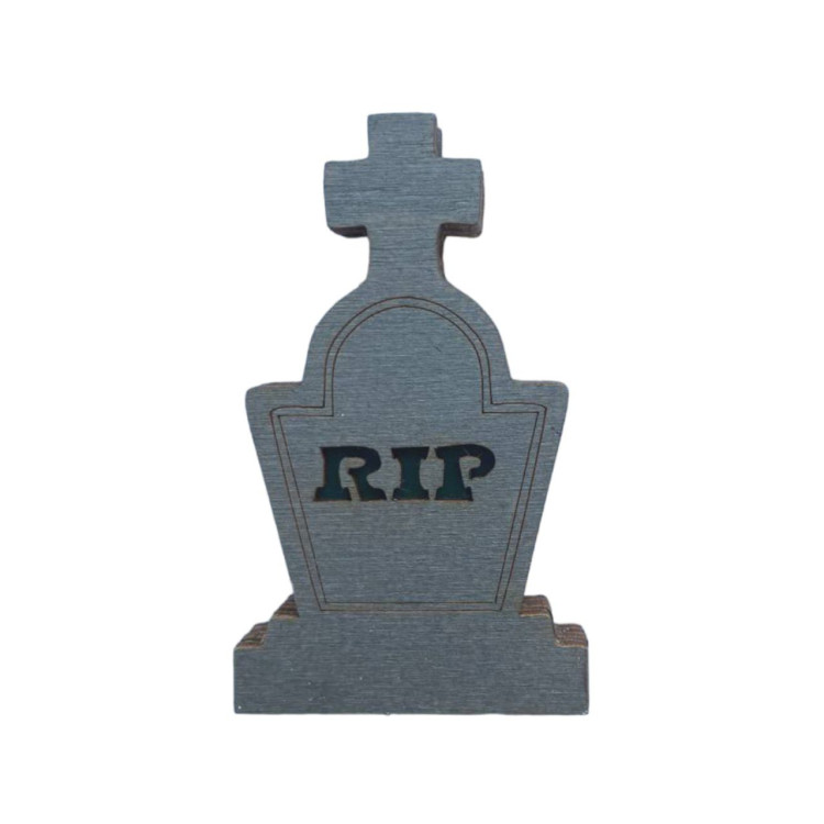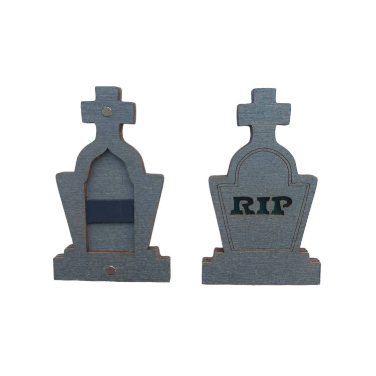 Wooden needle cases shaped like a gravestone with “RIP” cutout, designed for Halloween-themed stitching accessories.