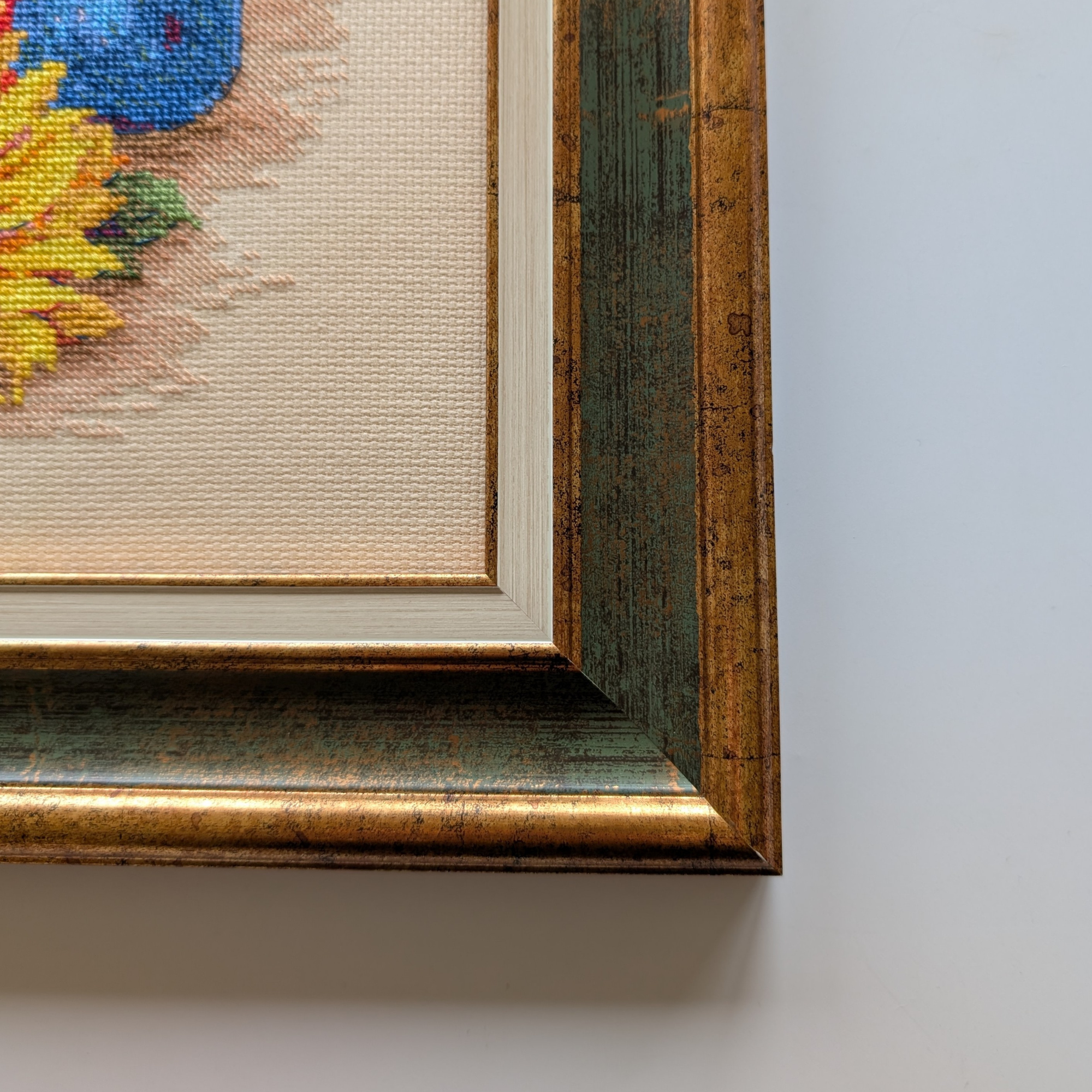 Discover a truly special framed artwork from RIOLIS. This is more than decoration—it is art with history. Each framed model is unique. No two pieces are the same. They have traveled to exhibitions, been admired by visitors, and carry stories within their frames. With every journey, they gained character and charm. That makes them far more than ordinary pictures.