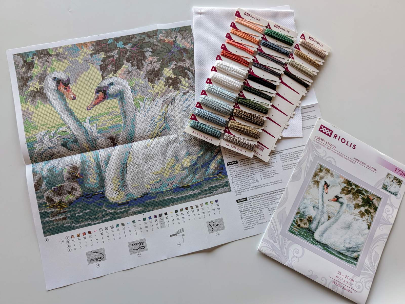 1726 White Swans Cross Stitch Kit with Aida fabric
